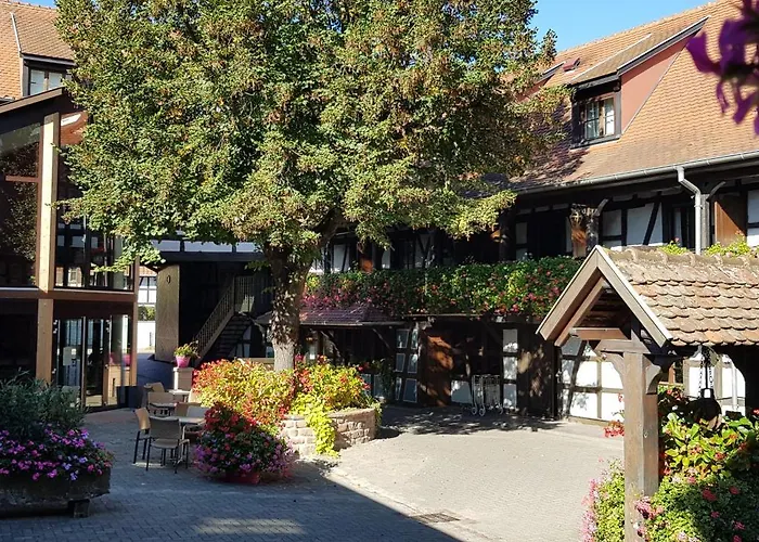 Det charmiga 3-stjärniga Hotel Restaurant Pere Benoit Entzheim erbjuder 20 rum inom 3 km från Eglise protestante. Det finns en parkering på plats.